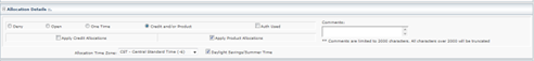 - Note: If the Apply Credit Allocation or Apply Product Allocation option is selected, but there is no credit or product allocation record attached, the system issues a Deny to the customer.