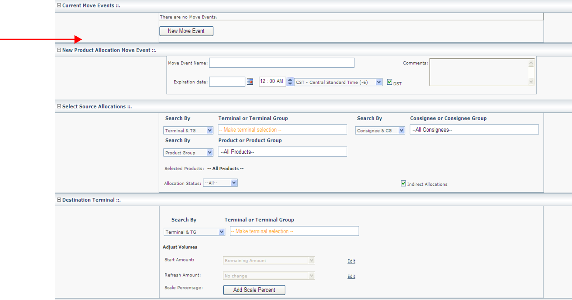 - Enter information in the remaining fields on the New Product Allocation Move Event