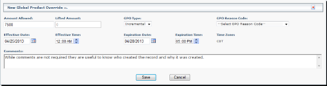 The Product Override Settings page enables administrators to set parameters governing the approvals and setup of both Pre-Approved Product Overrides (PAPO) and Global Product Overrides (GPO). By establishing these administrative settings, the risk of error is reduced for allowing too many PAPO loads.