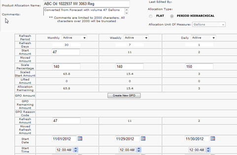 Customer’s current daily allocation is at -6000 gallons, causing them to request a GPO for 7000 gallons to get them through the day.