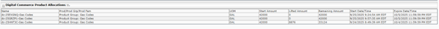 Digital Commerce Product Allocations panel: Displays a list of current Digital Commerce allocations. Note: Digital Commerce functionality must be enabled for this to display.