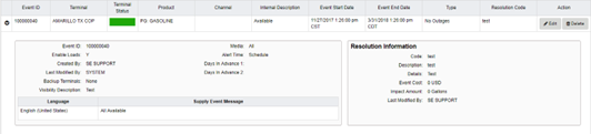 | Resolution Code | Contains the supplier customized code to track how the event was resolved. |