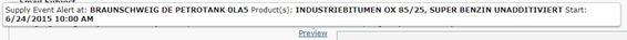 Each alert type within DTN TABS, including Supply Event messages, can have a custom footer message (Alerts > Email Preferences > Footer) that appears. Footer messages are created by language with each allowing for a unique URL.
