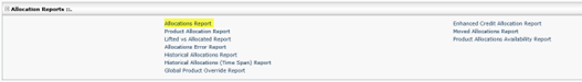 If you are not certain what credit record to look at, run the Allocation Report with the Terminal/Consignee and look for a record that has Yes in the Credit Checked field. If Yes is selected, then the consignee group to use in the Allocation/Credit/Manage page displays, or in the case of legacy credit, the options to select in the Allocation/Product/Manage page.